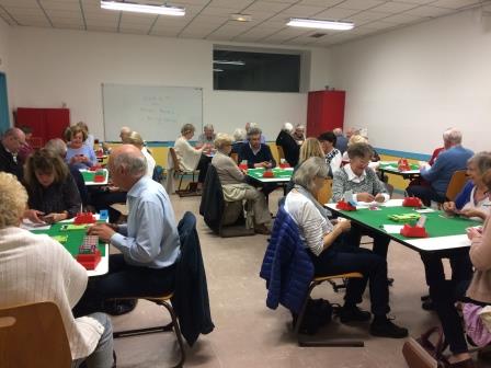 Les cours ont eu lieu le premier soir et les trois matins suivants et les tournois commentés le soir, de 20 h 30 à 23 h 30, avec exclusivement des donnes d’application des cours. Comme d’habitude, Marc se promène au milieu des tables pendant le tournoi, ce qui lui permet de faire ses commentaires “à chaud”. Bien entendu, chacun reçoit ensuite un livret avec le commentaire de toutes les donnes jouées, pour compléter le livret de cours distribué le matin.