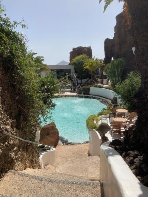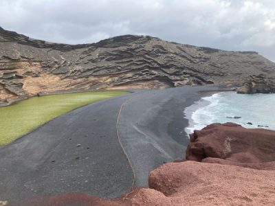Je n’étais jamais allé aux Canaries… mais je ne regrette pas le voyage ! Lanzarote est une île tout-à-fait fascinante : volcanique et recouverte de lave grise sur une bonne partie de sa surface, elle offre des paysages uniques : on a parfois l’impression d’être sur Mars (à cause de traces d’oxyde de fer rouge), puis on tombe sur un village immaculé (toutes les maisons sont blanches) ou sur un “champ” de vignes curieusement logées dans de mini cratères pour les protéger du vent. Il n’y tombe pas plus de 200 mm d’eau par an, donc inutile de se tracasser pour la météo ! Mais il n’y fait jamais de températures caniculaires, ce qui permet de se prélasser sur la plage sans souffrir de la chaleur. L’eau de l’île provient d’usines de désalinisation et de la poussière volcanique qui retient la rosée.